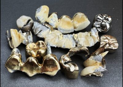 Beim Ankauf werden Fremdmaterialien wie Keramik, Kunststoff oder Zahnzement berücksichtigt und fachgerecht getrennt. Bewertet wird ausschließlich der tatsächlich enthaltene Edelmetallanteil.